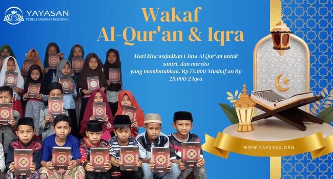 Wakaf AlQuran dan iqra atas nama orang tua untuk Santri Pesantren dan TPQ Pelosok NegeriYayasan Peduli Sahabat Negeriku